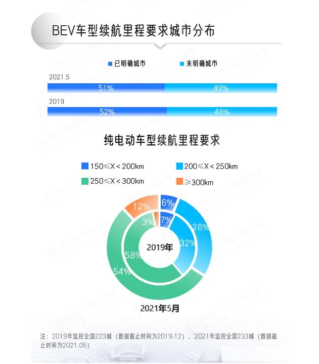3.續(xù)航要求:目前主要集中在250km-300km,隨著新能源產(chǎn)品和技術(shù)的提升,未來要求300km以上的城市將會增多。