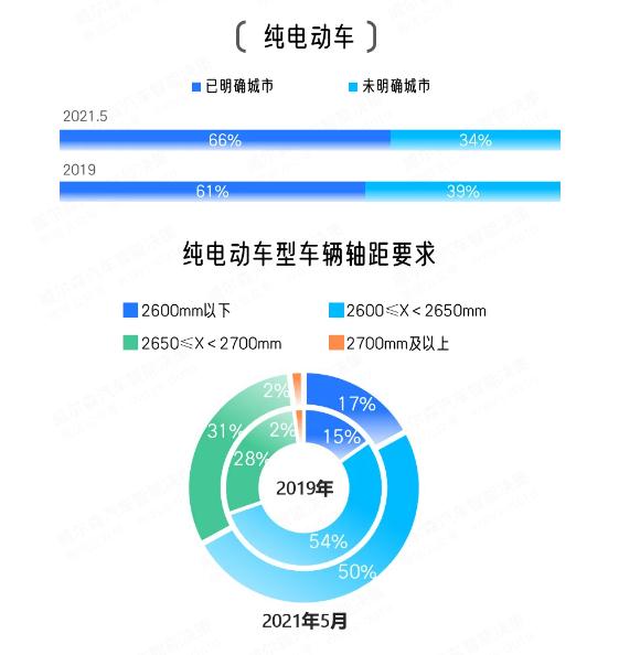 2.軸距要求:新能源車的軸距要求低于與燃油車,主要集中在2600mm-2650mm,燃油車要求在2700mm以上的比例較高。