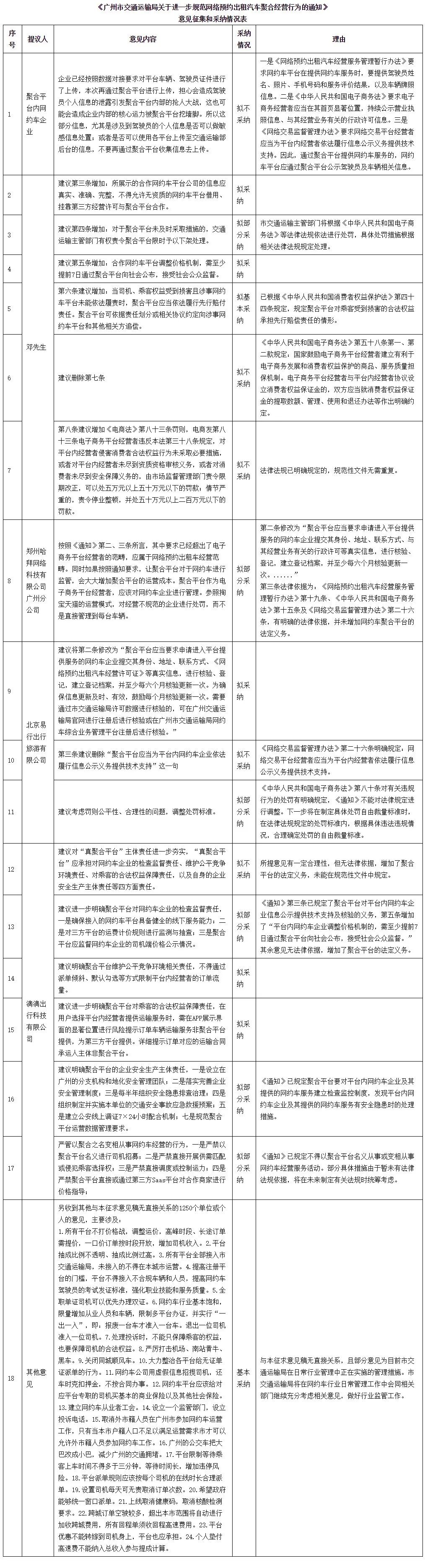 附:《廣州市交通運輸局關(guān)于進(jìn)一步規(guī)范網(wǎng)絡(luò)預(yù)約出租汽車聚合經(jīng)營行為的通知》意見征集和采納情況表