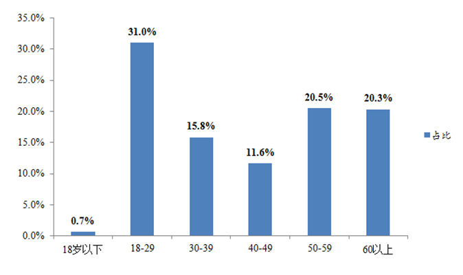道路客運剩下的人群,大體來看是學生群體、中老人群體為主力軍。我們來看下案例中所提到S市到C市L區(qū)的道路客運的年齡分布情況,如下圖:
