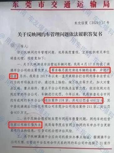 1.4月17日約談了滴滴,要求每月提交清退車輛名單,今年以來我局共查處全市網(wǎng)約車平臺違法案件238宗,共處罰金695萬元。其中滴滴違法案件211宗,處以罰金633萬元。